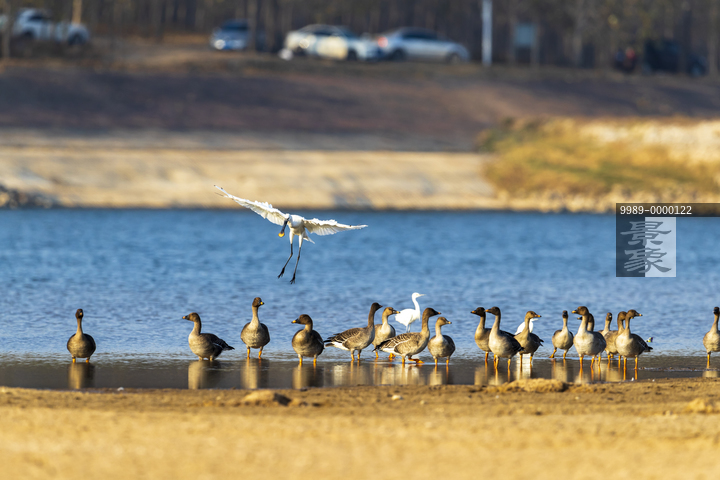 图片标题:     山东郯城:琵鹭竞飞“舞”沂河
