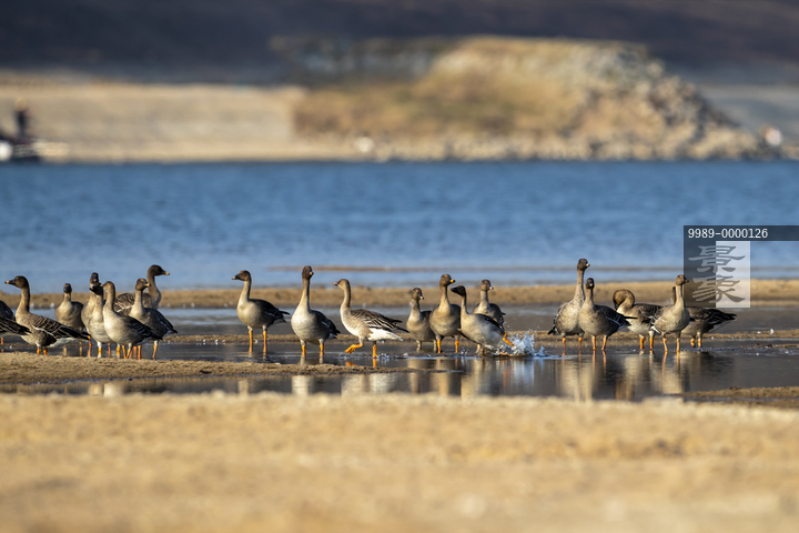 图片标题: 山东郯城:琵鹭竞飞“舞”沂河
