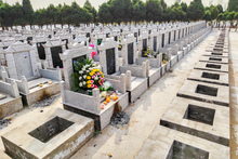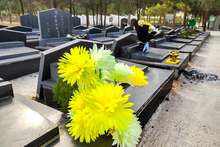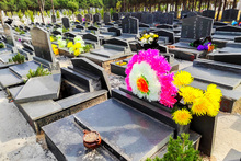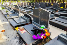 图片标题:     寒衣节公墓的鲜花和祭品