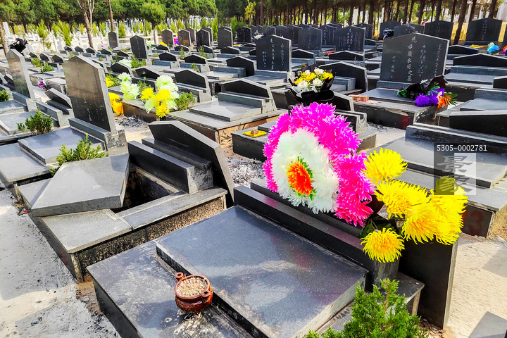 图片标题: 寒衣节公墓的鲜花和祭品