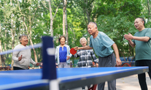 图片标题: 公园内使用锻炼器材锻炼的老年夫妇
