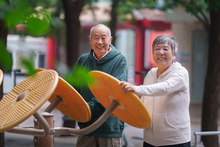 图片标题: 公园内抖空竹的老年人