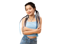 图片标题: 抱着笔记本电脑的时尚年轻女孩
