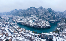 图片标题: 航拍东方威尼斯镇远古城雪景
