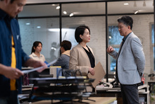 图片标题: 在办公室里,东方商务团队在开会讨论工作方案。