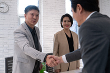 图片标题: 在办公室里,东方商务团队在开会讨论工作方案。