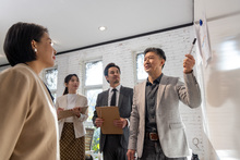 图片标题: 办公室里,一位亚洲青年女职员拿着一摞文件