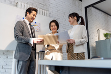 图片标题: 办公室里,一位亚洲青年女职员拿着一摞文件