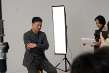 图片标题: 四位亚洲商务人士在办公室里给一名同事庆祝生日,用手机拍照