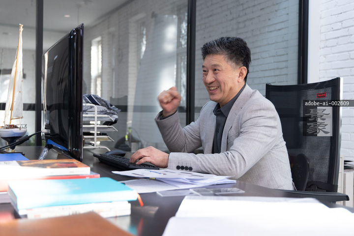 图片标题:     办公室里,一个东方商务男士坐在电脑前工作
