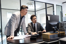 图片标题: 办公室里,一位亚洲青年女职员拿着一摞文件
