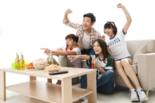 图片标题: 年轻球迷看比赛欢呼呐喊