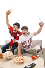 图片标题: 年轻球迷看比赛欢呼呐喊