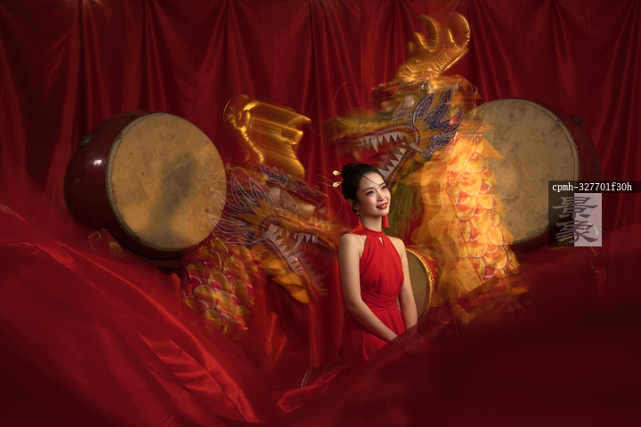 图片标题: 龙年新年气氛,一位亚洲青年女性过新年
