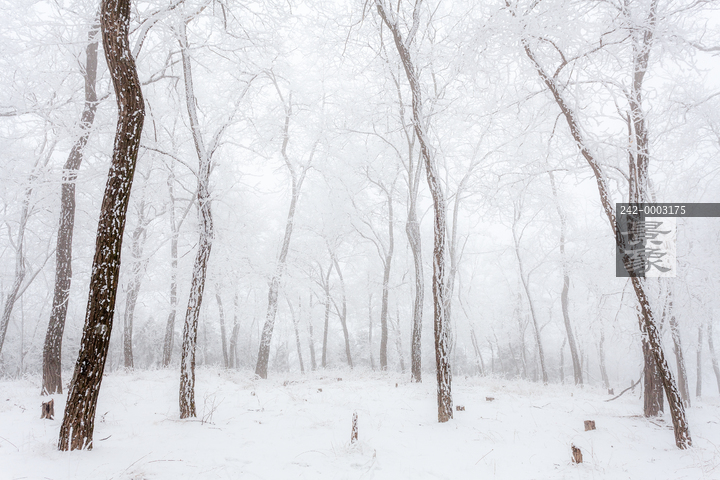 图片标题: 挂满雾凇的槐树林