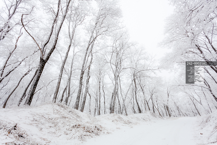 图片标题: 挂满雾凇的槐树林