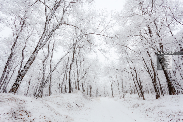 图片标题: 挂满雾凇的槐树林