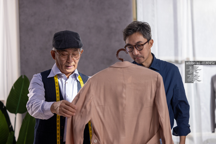 图片标题:     服装设计工作室里,两位亚洲服装设计师团队讨论工作。