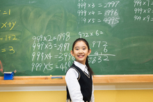 图片标题: 小学生教室里,一位亚洲青年女教师辅导小学生们学习