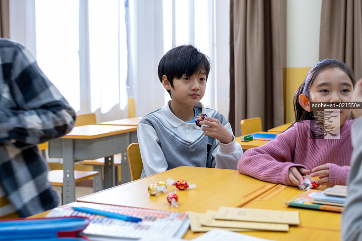 图片标题: 小学生教室里,课间休息时间小学生们玩耍