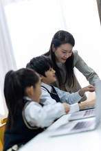图片标题: 可爱的小学生在教室里,课间休息聊天复习功课。