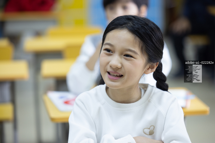 图片标题:     小学生教室里,亚洲小学生认真的上课