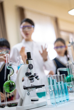 图片标题: 在小学生的计算机课上,一位亚洲女老师在给两位小学女生上课。