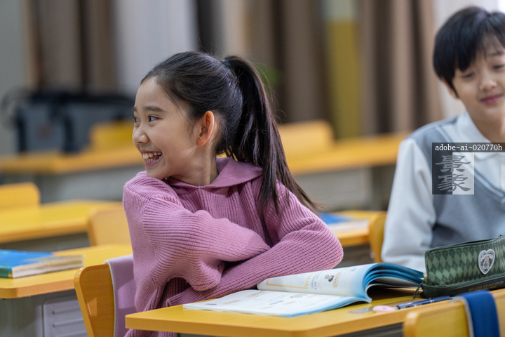 图片标题: 学校课堂上,两位亚洲小学生认真的学习上课。