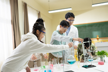 图片标题: 中学教室里,课间休息时间老师和同学们愉快的交流讨论问题。