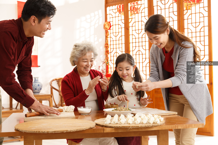 图片标题: 幸福家庭过年包饺子