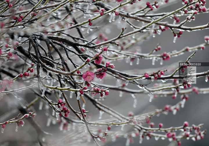 图片标题: 冻雨中的红梅美不胜收