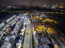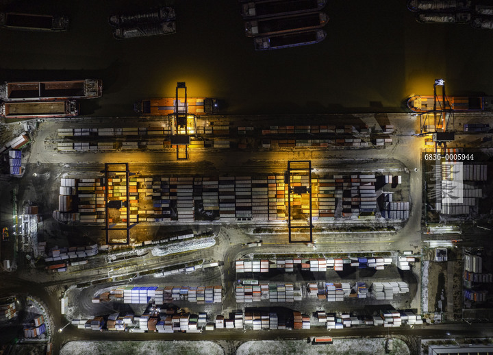 图片标题: 江苏淮安春节后繁忙的运河之夜