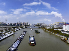图片标题: 江苏淮安春节后繁忙的运河之夜