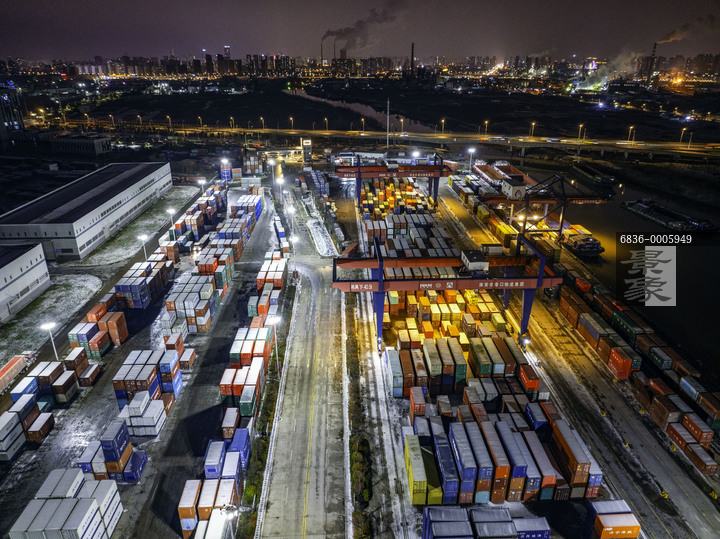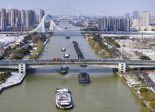 图片标题: 江苏淮安春节后繁忙的运河之夜