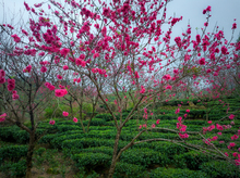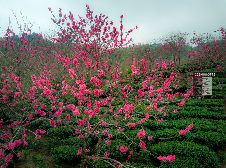 图片标题: 春天茶园里的桃花盛开