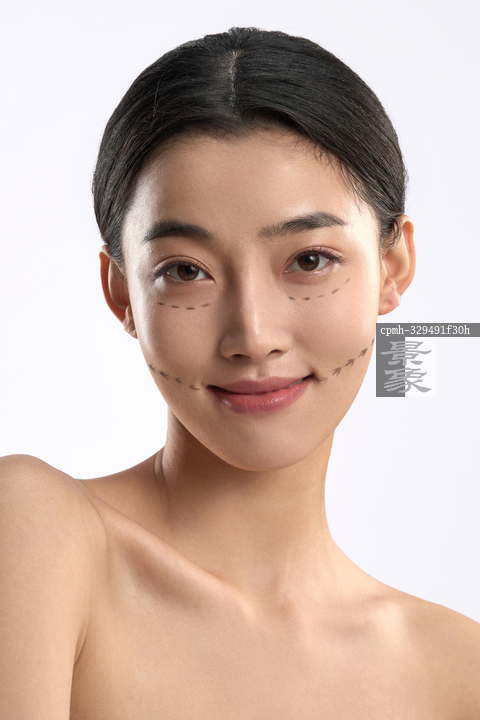 图片标题: 面部划线做整形美容的青年女人