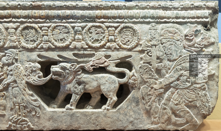 图片标题:     北京故宫五洲四海-一带一路文物考古合作展-北朝-隋彩绘贴金浮雕石床前档-北朝-隋-美国纽约曼哈顿区检察办公室返还(局部)