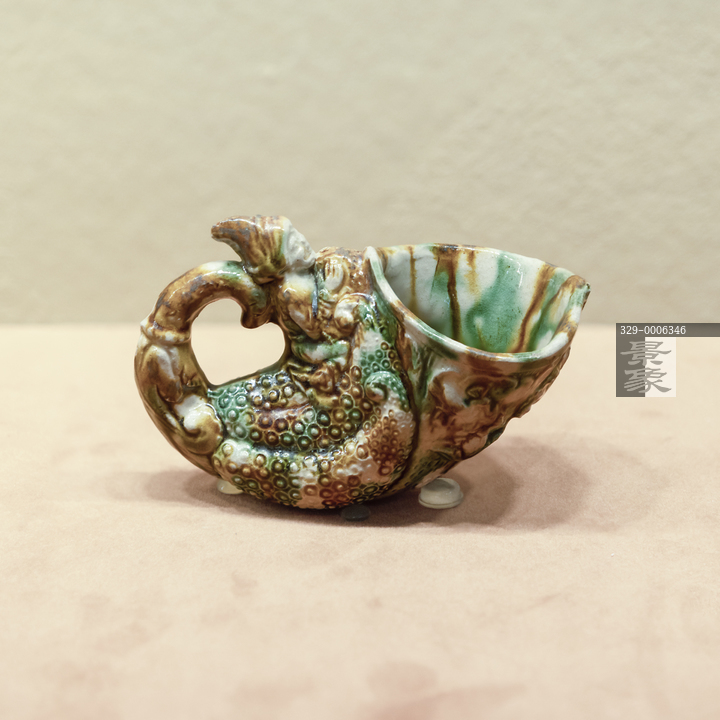 图片标题: 北京故宫五洲四海-一带一路文物考古合作展-唐三彩小海神角杯-唐-西安月登阁唐墓出土-西安市文物保护考古研究所
