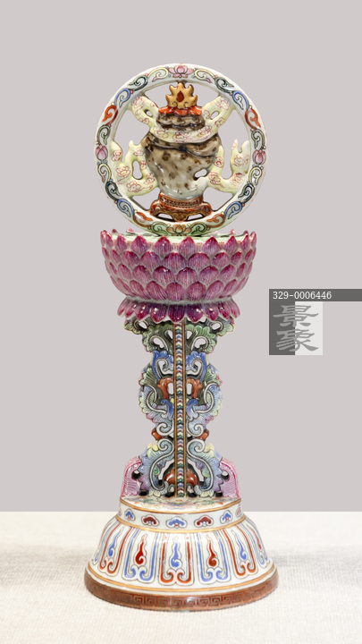图片标题: 北京故宫武英殿陶瓷馆-粉彩八宝之一-右旋海螺-清乾隆