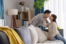 图片标题: 快乐的一家四口在房间里玩耍