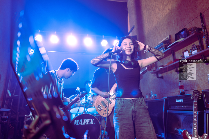 图片标题:     年轻乐队在舞台上表演