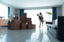图片标题: 快乐的一家四口在房间里玩耍