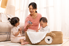 图片标题: 房间里年轻妈妈抱着宝宝玩耍