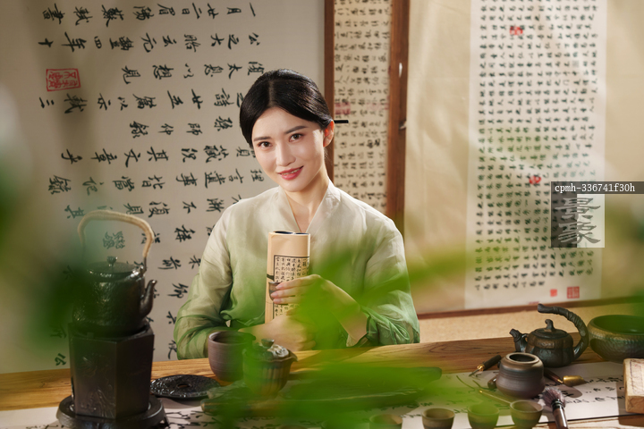 图片标题:     茶室里一位中国古典式女人