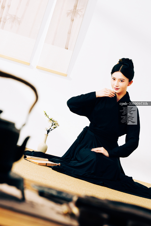 图片标题: 一位中国古典女人在茶室里喝茶