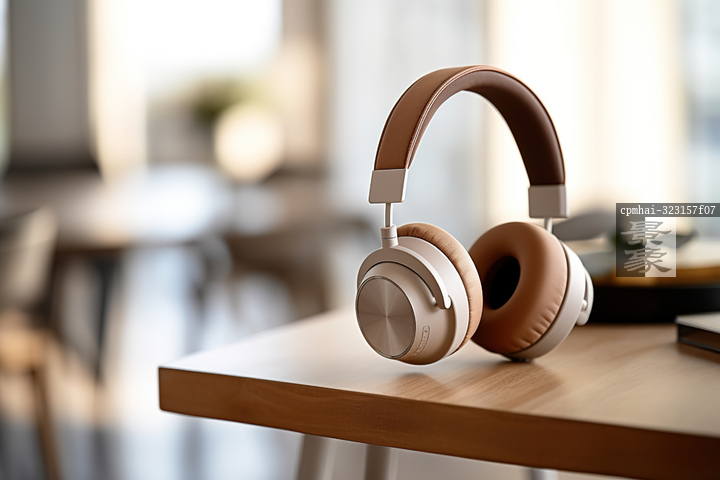 图片标题: AI生成的插图现代家居背景耳机