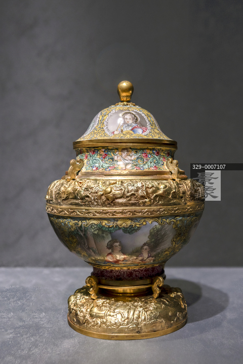 图片标题: 故宫-紫禁城与凡尔赛宫-17、18世纪的中法交往-乾隆款画珐琅西洋人物图盖罐-清乾隆-故宫博物院藏