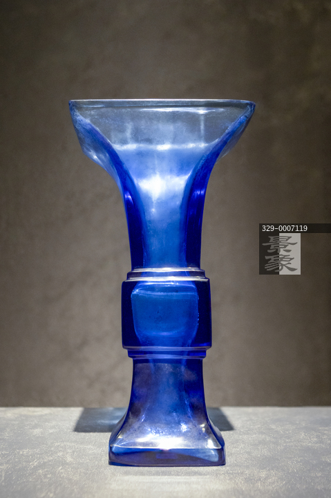 图片标题: 故宫-紫禁城与凡尔赛宫-17、18世纪的中法交往-乾隆款蓝色透明玻璃方觚-清乾隆-清宫造办处-故宫博物院藏