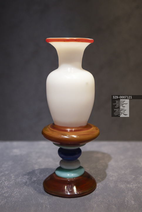 图片标题: 故宫-紫禁城与凡尔赛宫-17、18世纪的中法交往-乾隆款彩色玻璃撇口瓶-清乾隆-清宫造办处-故宫博物院藏