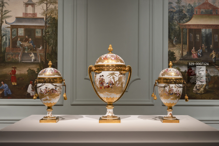 图片标题: 故宫-紫禁城与凡尔赛宫-17、18世纪的中法交往-彩绘描金风景人物图蛋形瓷瓶-1775年法国塞弗尔瓷器工场-凡尔赛宫与特里亚农宫国家博物馆藏